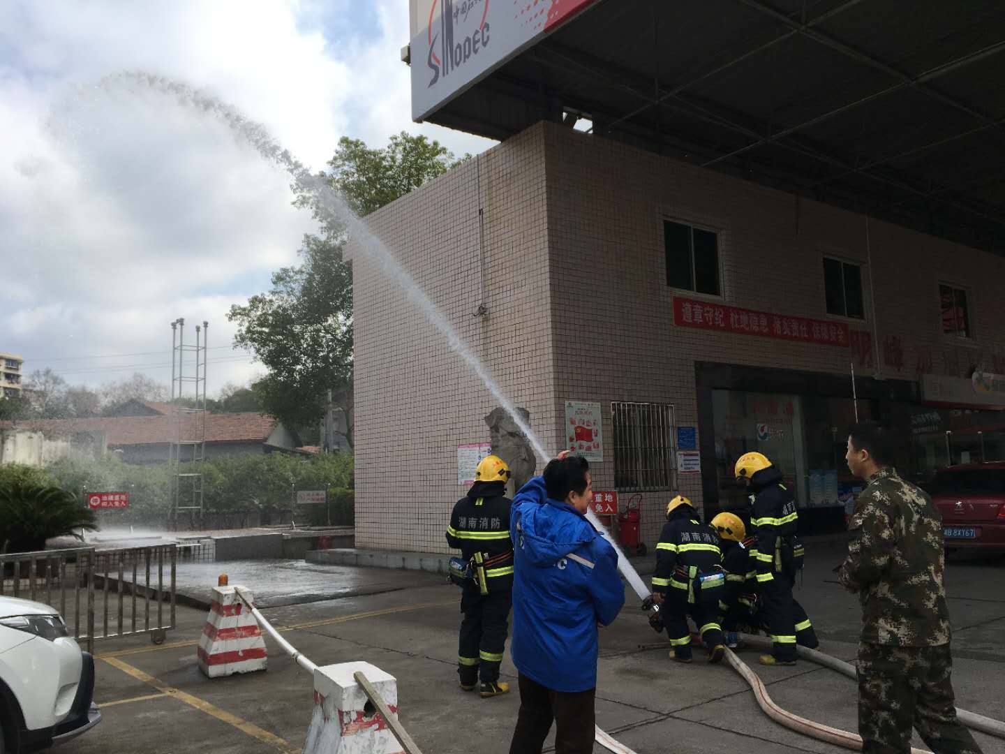 石峰區(qū)消防大隊(duì)組織我們明峰加油站人員進(jìn)行消防演習(xí)