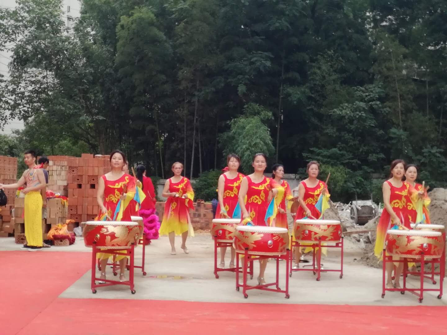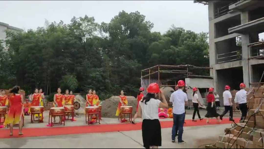 上午9時30分,在威風(fēng)的鑼鼓聲中,前來參加封頂儀式的有關(guān)領(lǐng)導(dǎo)沿著紅地毯搭乘電梯步入封頂會場,儀式在歡快的音樂聲中正式開始。