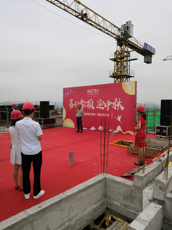 熱烈祝賀株洲市清水建筑工程有限公司施工項目——型格七都會 喜封金頂