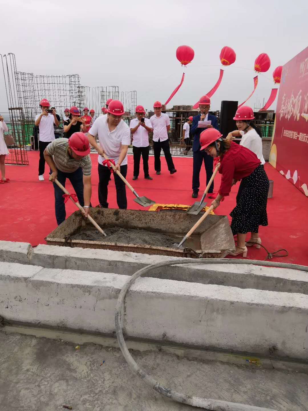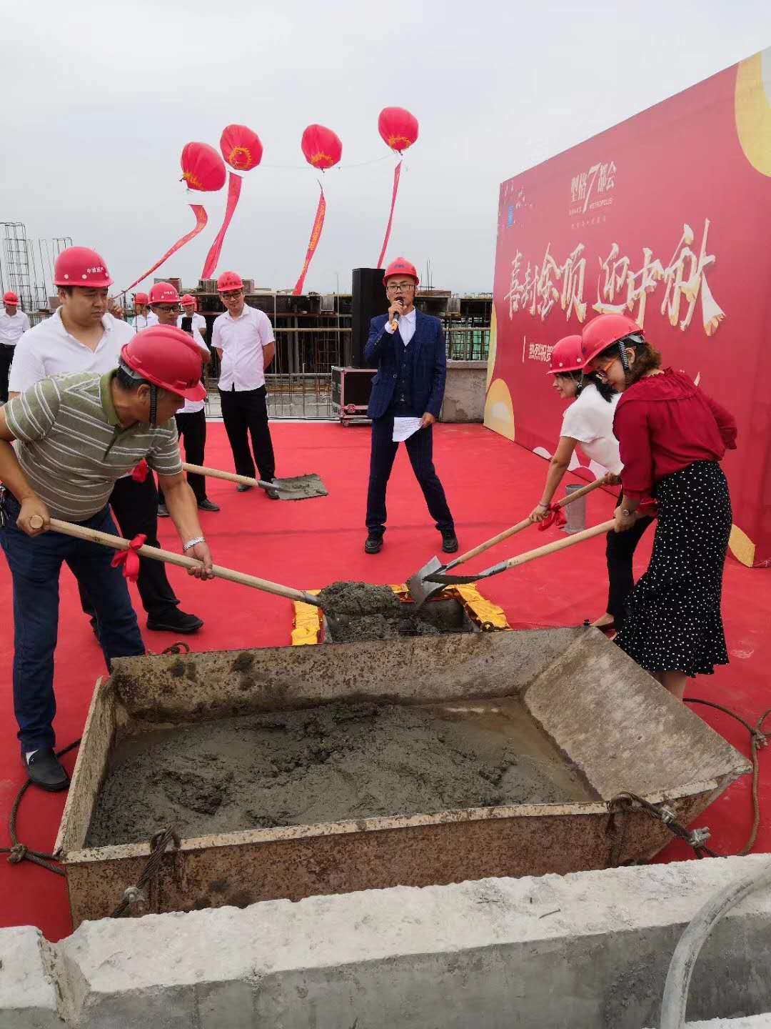 株洲市清水建筑工程有限公司總經(jīng)理劉獻(xiàn)忠、株洲市中誠房地產(chǎn)開發(fā)有限責(zé)任公司總經(jīng)理姜利、明峰集團(tuán)股東代表劉艷、湖南云龍和順房地產(chǎn)開發(fā)有限公司總經(jīng)理馬志鋼共同將水泥注入預(yù)留方形槽中,隨著最后一方混泥土的澆筑完成,型格七都會一期工程2#樓主體結(jié)構(gòu)順利完成封頂。施工現(xiàn)場,鞭炮齊鳴,掌聲雷動,大家共同見證工程建設(shè)開工以來最激動人心的階段性成果。