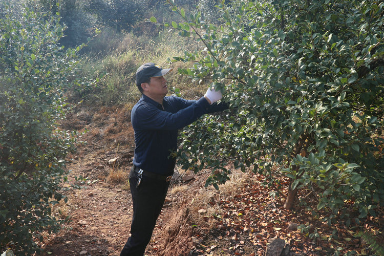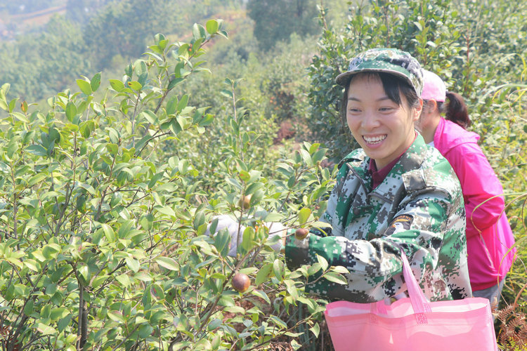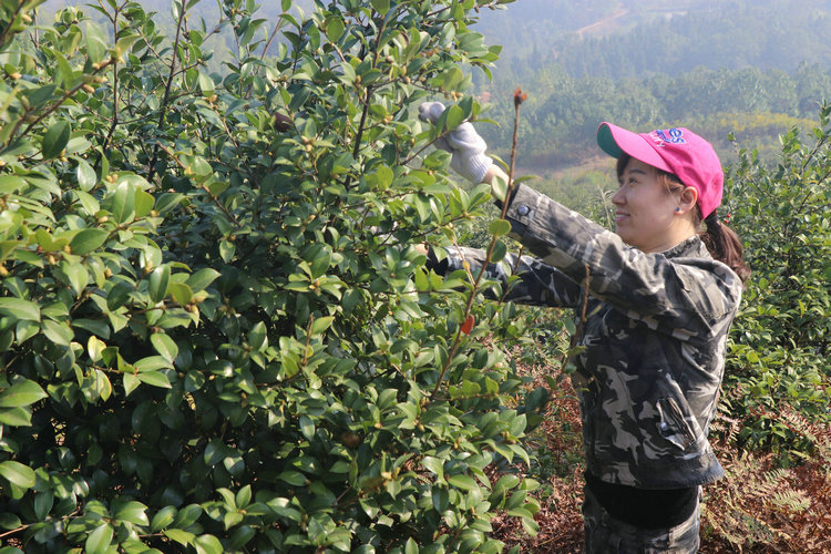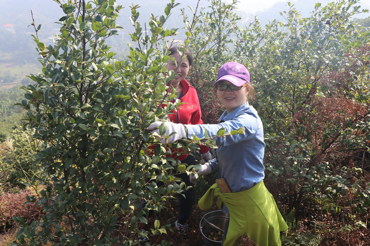 在這次采摘活動(dòng)總負(fù)責(zé)人劉獻(xiàn)忠的帶領(lǐng)和安排下,大家有序的從山頂往山下采摘,站在山頂往下看,滿林的油茶樹(shù)上掛滿了紅紅的果實(shí),大家陸續(xù)進(jìn)入茶山開(kāi)始了摘茶籽的勞動(dòng)。